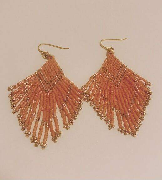ビーズを一つ一つ編み上げたフリンジピアスで、